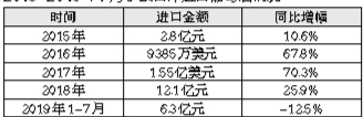 2015-2019年7月寧波口岸進口葡萄酒情況