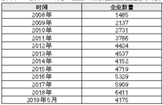 2008年-2009年5月中國進口瓶裝酒企業數量變化情況