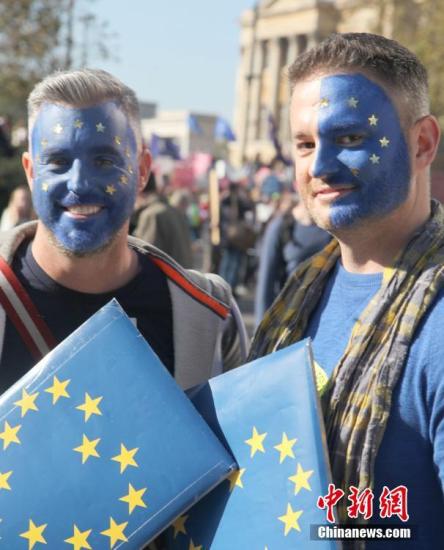 資料圖:當?shù)貢r間2018年10月20日,67萬英國民眾匯集在倫敦議會廣場舉行示威游行活動,呼吁對英國脫歐最終協(xié)議舉行全民投票。