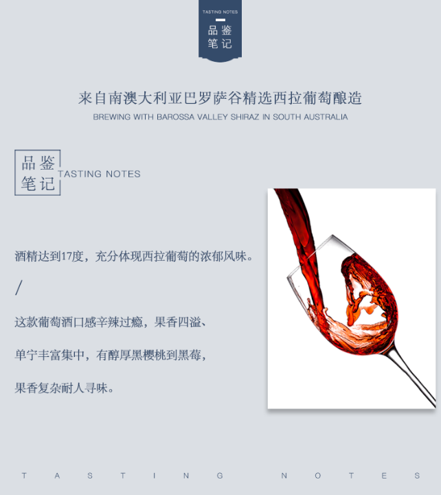 嘗新筆記 : 這款葡萄酒口感辛辣過癮,單寧豐富,有醇厚黑櫻桃到黑莓,果香復(fù)雜耐人尋味