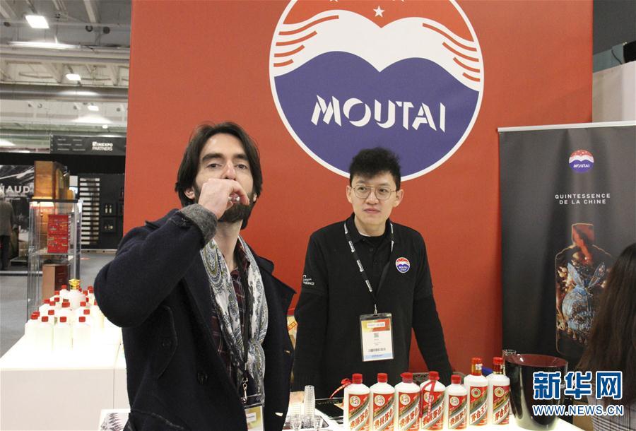2月12日,在法國巴黎國際葡萄酒及烈酒博覽會上,一名參觀者品嘗貴州茅臺酒。 法國巴黎國際葡萄酒及烈酒博覽會于2月10日至12日舉行。 新華社記者 徐永春 攝